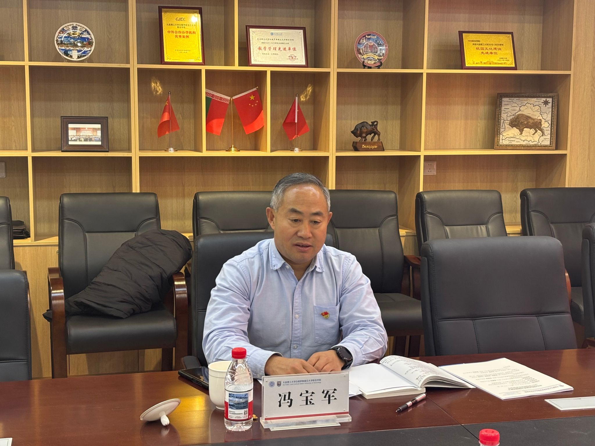 中外合作办学特色,以高质量党建引领事业高质量发展,把党的领导贯穿合作办学全过程,彰显中外合作办学的党建底色,实现党建业务同频共振、互促共进。三是擦亮中白合作办学第一品牌, 打造办学标杆样板。中白合作办学是两国深度合作的重要载体,要依托中白大学联盟、“一带一路”联合实验室等平台,强化示范引领效能,在办学实践中率先垂范、走在前列。要做好 “十五五” 规划顶层设计,突出中外合作办学优势,为推动一流大学建设加速卓越注入更多“中白力量”。