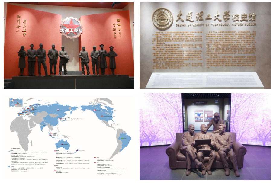 校史馆布展面积约2280平方米,由序厅、沿革厅、人物厅、校友厅、国际礼品厅五大展区组成,以文字、图片、实物和多媒体史料为主,以雕塑、部分场景复原等为辅助,注重弘扬学校优良办学传统、传承大工红色基因的主线,重点展现学校在人才培养、科学研究、社会服务、文化传承创新和国际交流合作等方面取得的丰硕成果,突出呈现学校在“四个服务”方面作出的重大贡献。