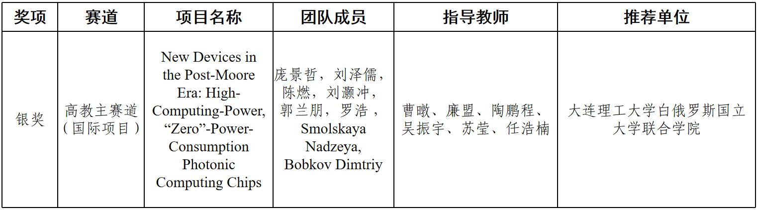Among the participating projects, the project Devices in the Post-Moore Era: High-Computing-Power, "Zero"-Power-Consumption Photonic Computing Chips, guided by teachers including Cao Tun and completed by students Pang Jingzhe, Liu Zeyu, Smolskaya Nadzeya, Bobkov Dimtriy, etc., won the Silver Medal in the International Project category of the competition.
