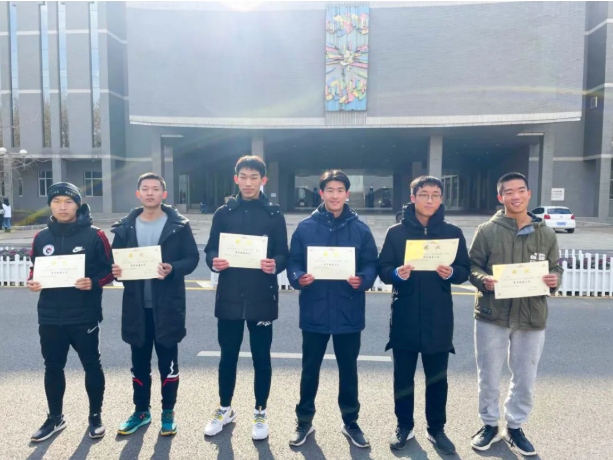 在观众们的翘首以盼中,运动健将们奔向终点,大一物理的任重贺同学一马当先·,以7′54″34的优异成绩将男子个人第一名的奖状收入囊中。其他同学也不甘示弱,紧随其后冲过终点线。男子组二到六名分别是曹智涵、张诗奇、张晋齐、唐瑞基以及张峻祎同学。