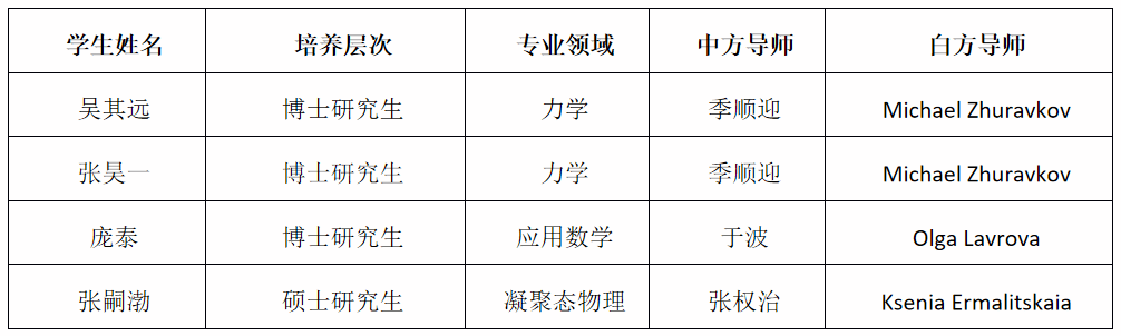 本次选派的4名研究生均具有突出的科研能力与国际化培养潜力: