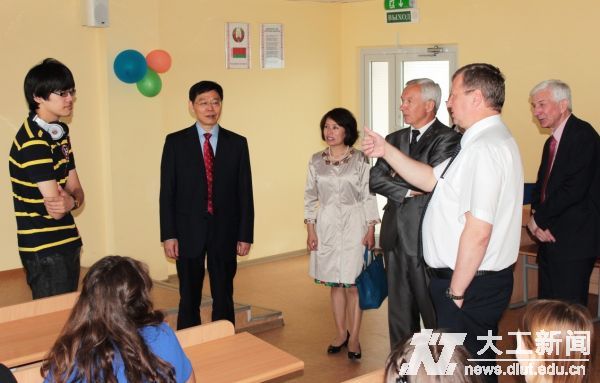 5月13日上午,郭东明校长一行在白俄罗斯国立大学校长Sergey Ablameyko院士和第一副校长Oleg Ivashkevich 院士陪同下参观了该校航空航天中心,在国际关系系东方语言教研室与同学们亲切会面,参观了生物系、无线电物理和计算机技术系,以及生物制药和先进光学技术等一批校办企业,参观期间还会见了白俄罗斯前副总理A.A.Tozik先生。