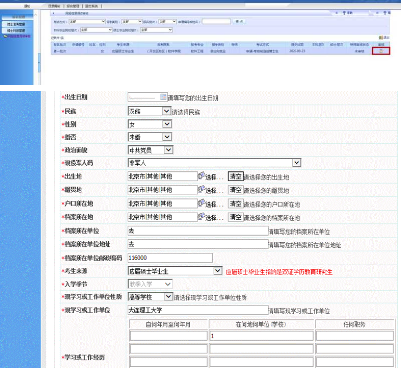 为提高我校招生信息化水平,方便招生导师及时查看本人招生报考情况。博士招生报名系统新增导师招生审核端口,现将审核考生网报审核意见功能模块介绍如下: