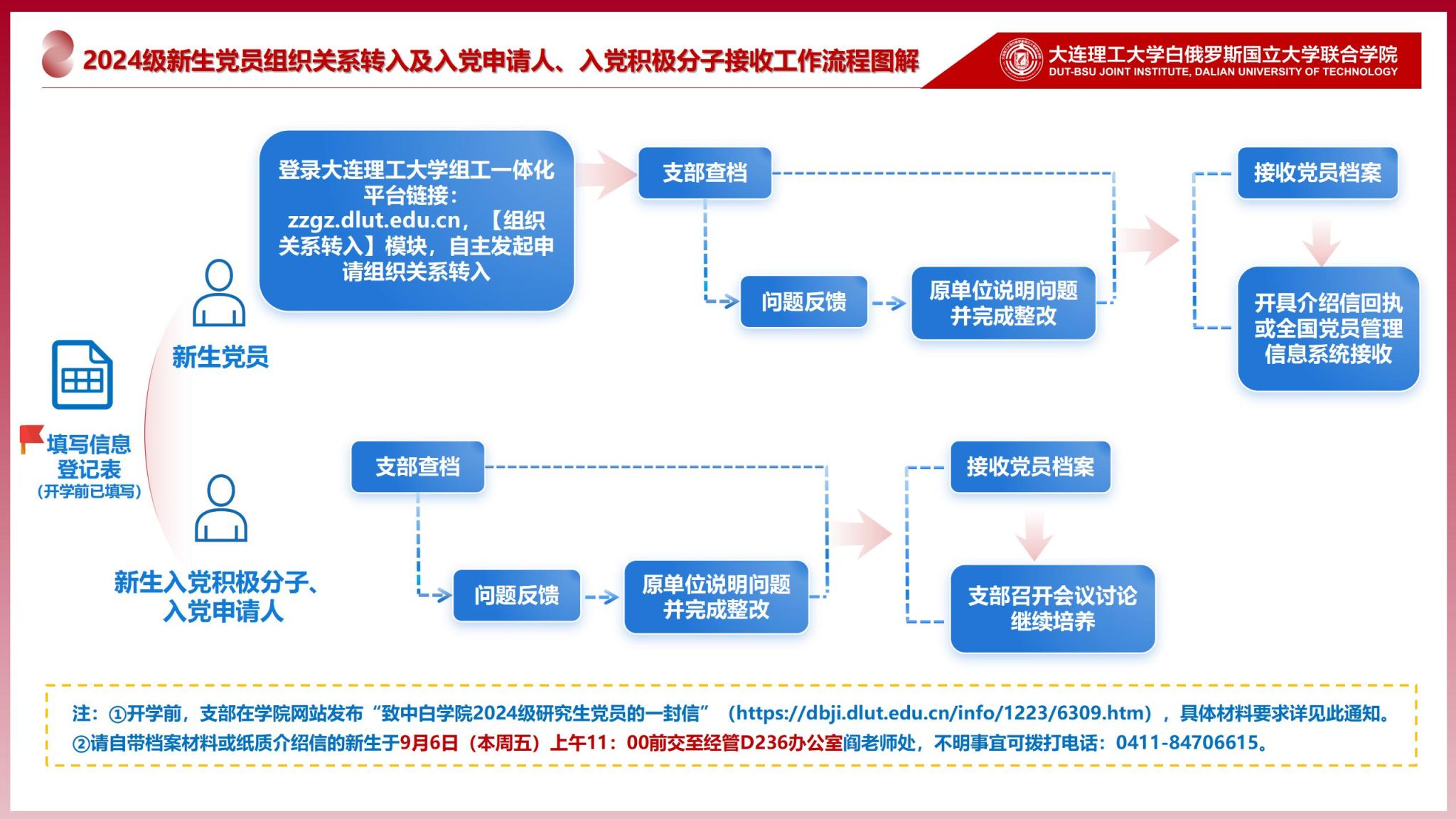 )进行学习,为顺利开展新生党员组织关系转入及入党申请人、入党积极分子接收培养工作,请大家仔细阅读工作说明,并在截止时间前按要求认真完成,整体工作流程如下。